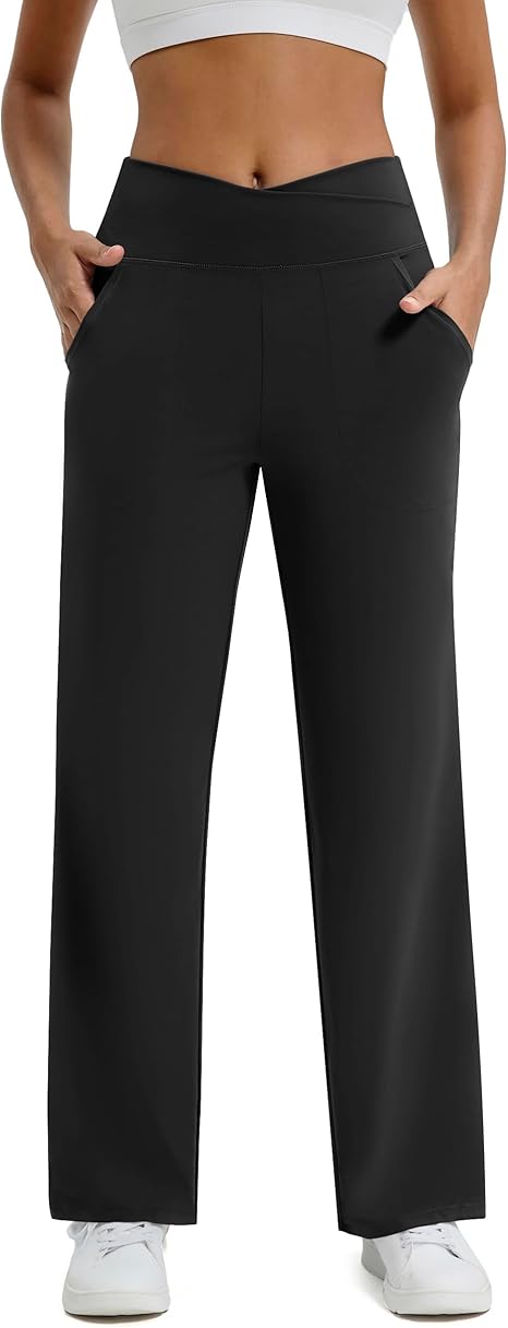 Wide Leg Pants for Women Casual Work Pants Crossover High Waisted Yoga Pants with Pockets