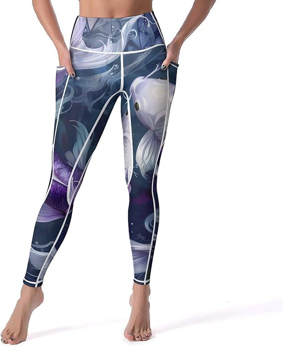 Yin And Yang Japanese Fish Women's Leggings with Pockets High Waist Tummy Control Yoga Pants for Workout