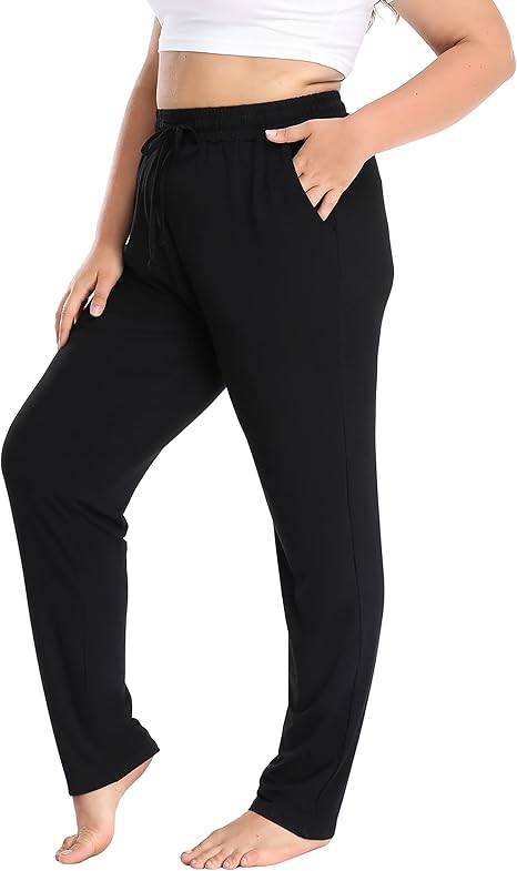 Women's Plus Size Comfy Lounge Pants Active Yoga Sweatpants Casual Stretchy Jogger Pants with Pockets Drawstring