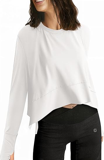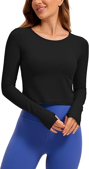 Long Sleeve Crop Tops for Women Workout Cropped Top Yoga Slim Fit Athletic Gym Shirts with Thumb Hole