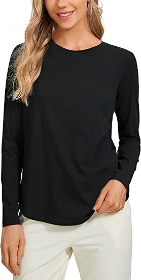 Pima Cotton Workout Long Sleeve Shirts for Women Athletic Crewneck Yoga Casual Tops Plain T-Shirt
