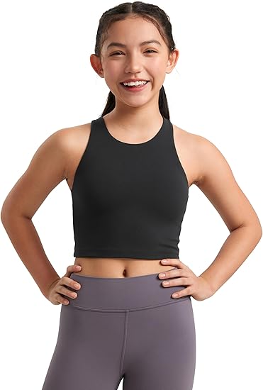 Girls Butterluxe Double Lined Tank Tops High Neck Racerback Cropped Tanks Basic Sleeveless Dance Top
