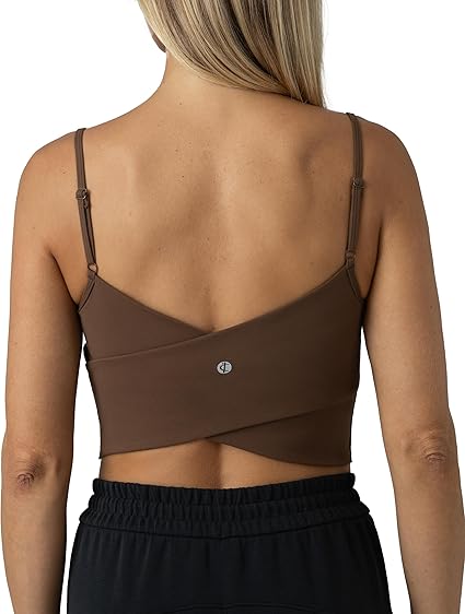Butterluxe Adjustable Longline Sports Bras for Women - Square Neck Padded Workout Crop Top Camisole Tank Top