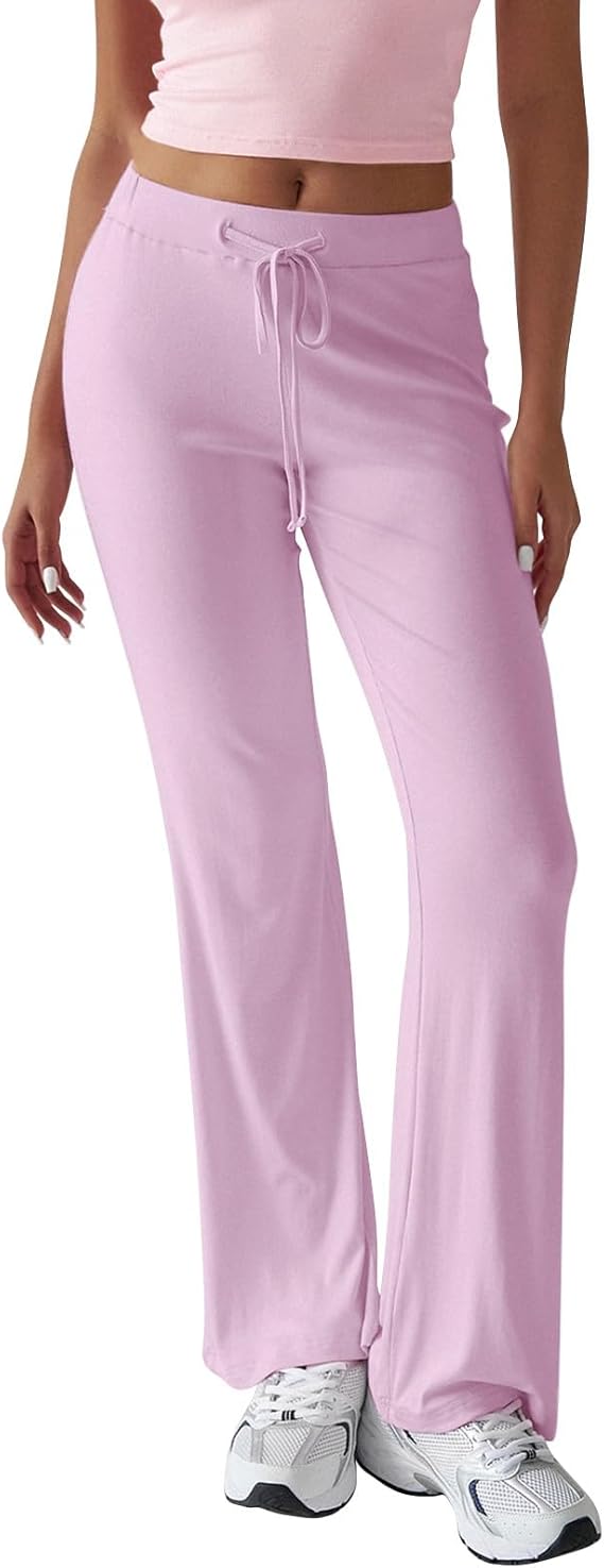 Flare Yoga Pants for Women Stretchy Skinny Comfy Flare Leggings Drawstring Elastic Waist Casual Gym Workout Pants