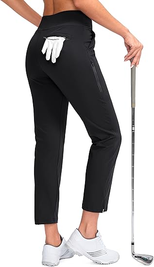 Women's Golf Pants Stretch Work Ankle Pants High Waist Dress Pants with Pockets for Yoga Business Travel Casual